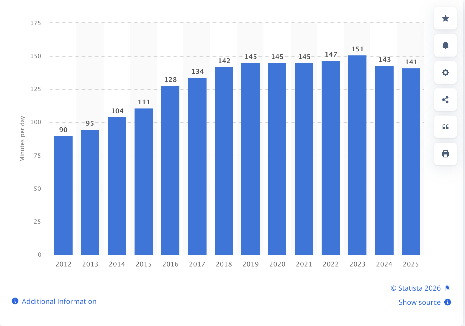 How a user can use this: Statista’s interface lets you directly grab bar charts, trend lines, and regional tables that you can drop into your research page. It’s ideal for data visualization sections, and there is a great variety in data, ranging from daily time on social media to number of social media network users worldwide.